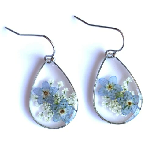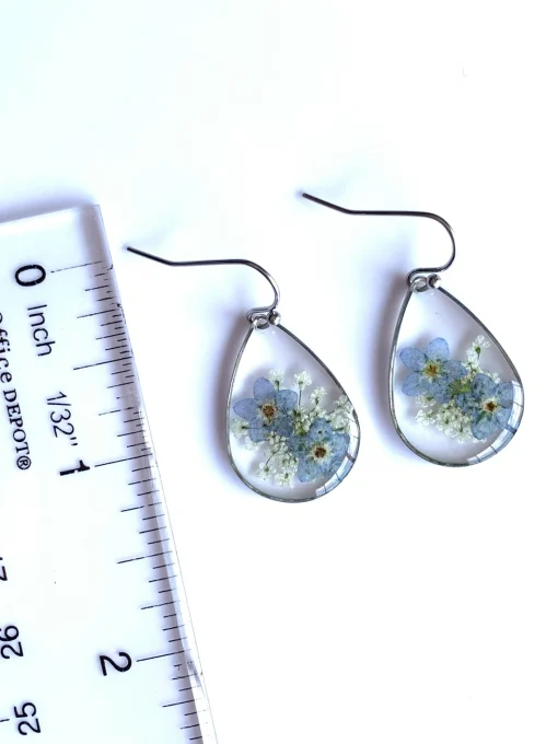 pressed real flower resin earring