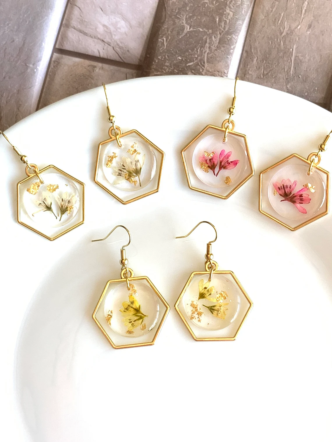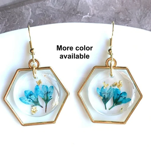 Hand Made earrings, Resin Dried flower earrings, 14k gold filled hook